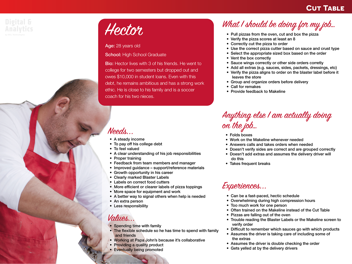 Persona - Hector Cut Table, Client: Papa Johns Pizza