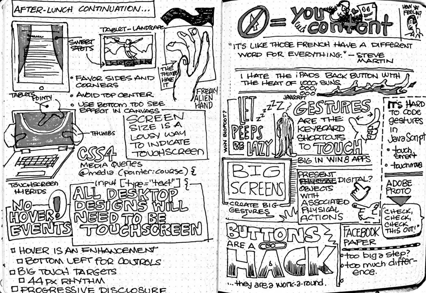 Sketchnotes - I was one of the first designers to share my sketchnotes at Adaptive Path's UXWeek conferences. I came back a year later to find a growing number of sketchnoters and a few who authored books on the practice.
