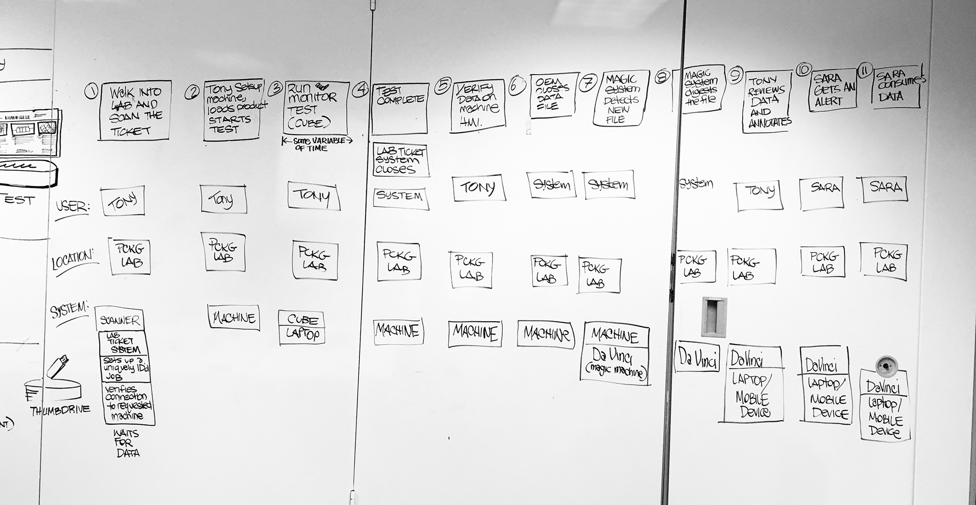 Turner Boardroom Sketch. I created This initial sketch while interviewing the client about Turner's document management. I later refined it to communicate our proposed project goals to executive management.