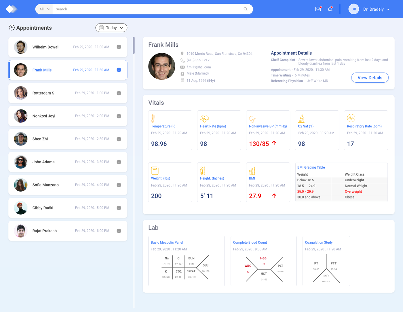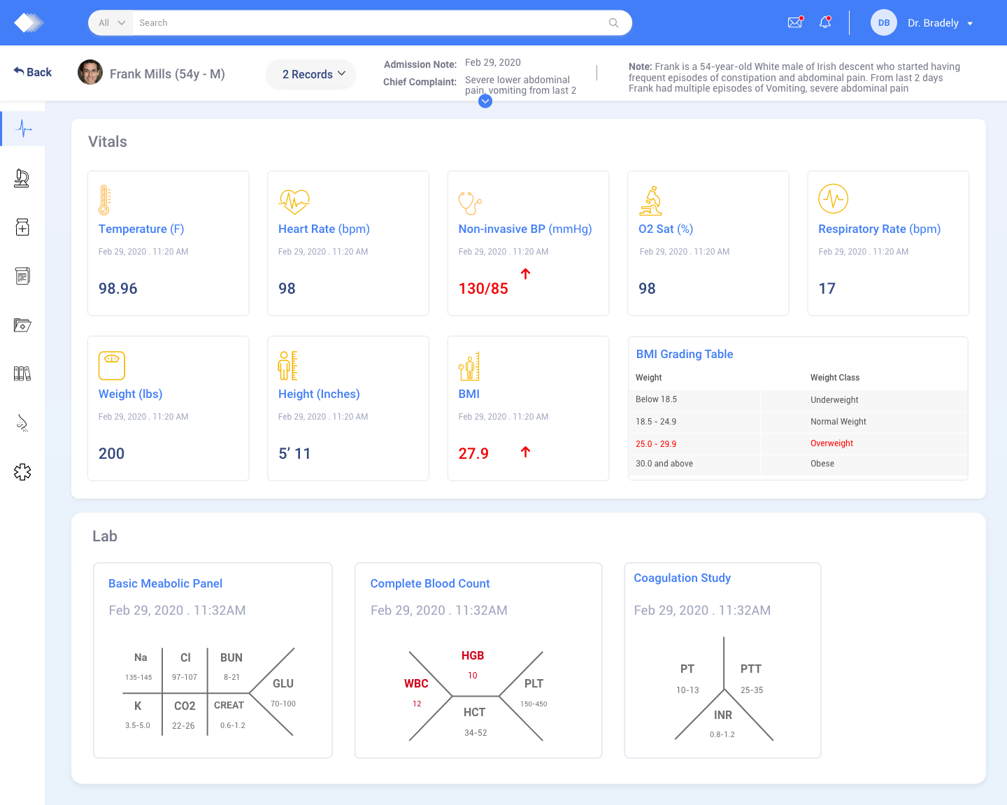Screen Comp - This screen provides doctors with an easy-to-understand visual representation of patient vitals, highlighting any abnormal values for quick identification.