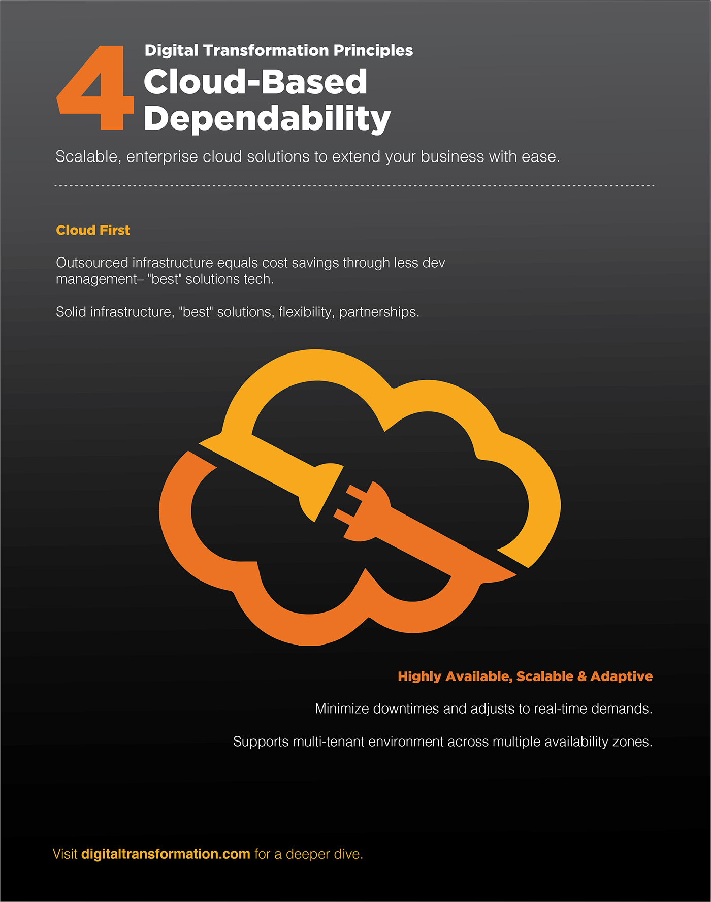Digital Transformation Principles Poster. Cloud-Based Dependability - 22x28, client Wawa. Graphic images: Shutterstock.